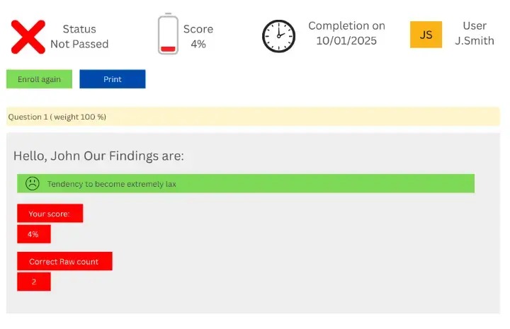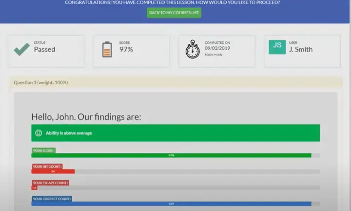 After a driver completes the test, the company receives a detailed performance report. This report includes individual results for each skill category along with an overall readiness rating.